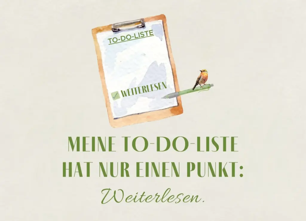 Der Alltag darf warten, denn ein gutes Buch ruft. Diese Postkarte bringt das Lebensmotto aller Lesebegeisterten charmant auf den Punkt. Mit einem Augenzwinkern und einer Prise Humor erinnert sie daran, dass Lesen nicht nur auf der To-do-Liste stehen sollte, sondern mitten im Herzen. Die zarte Illustration mit Klemmbrett, Stift und kleinem Plückefinken-Vogel verleiht dem Motiv eine verspielte Leichtigkeit.